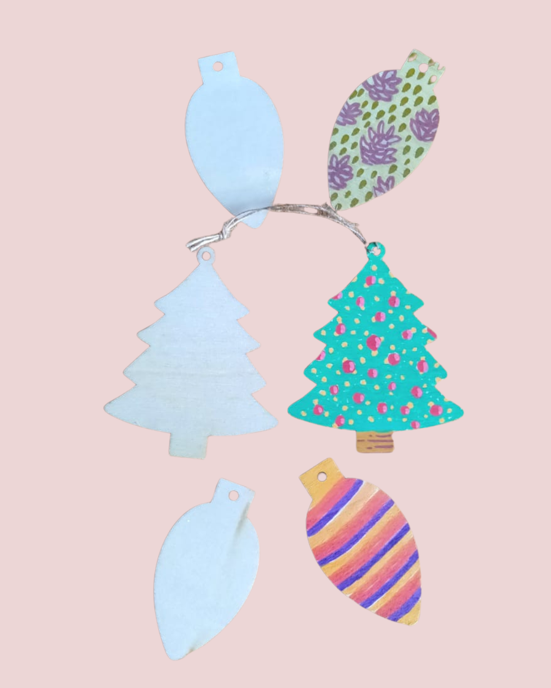 Je kunt de hangers zo bont versieren als je zelf wilt. Omdat het hout de verf snel absorbeert heeft het weinig tijd nodig om te drogen en kan het zo in een leuk kerstzakje de tas in.
